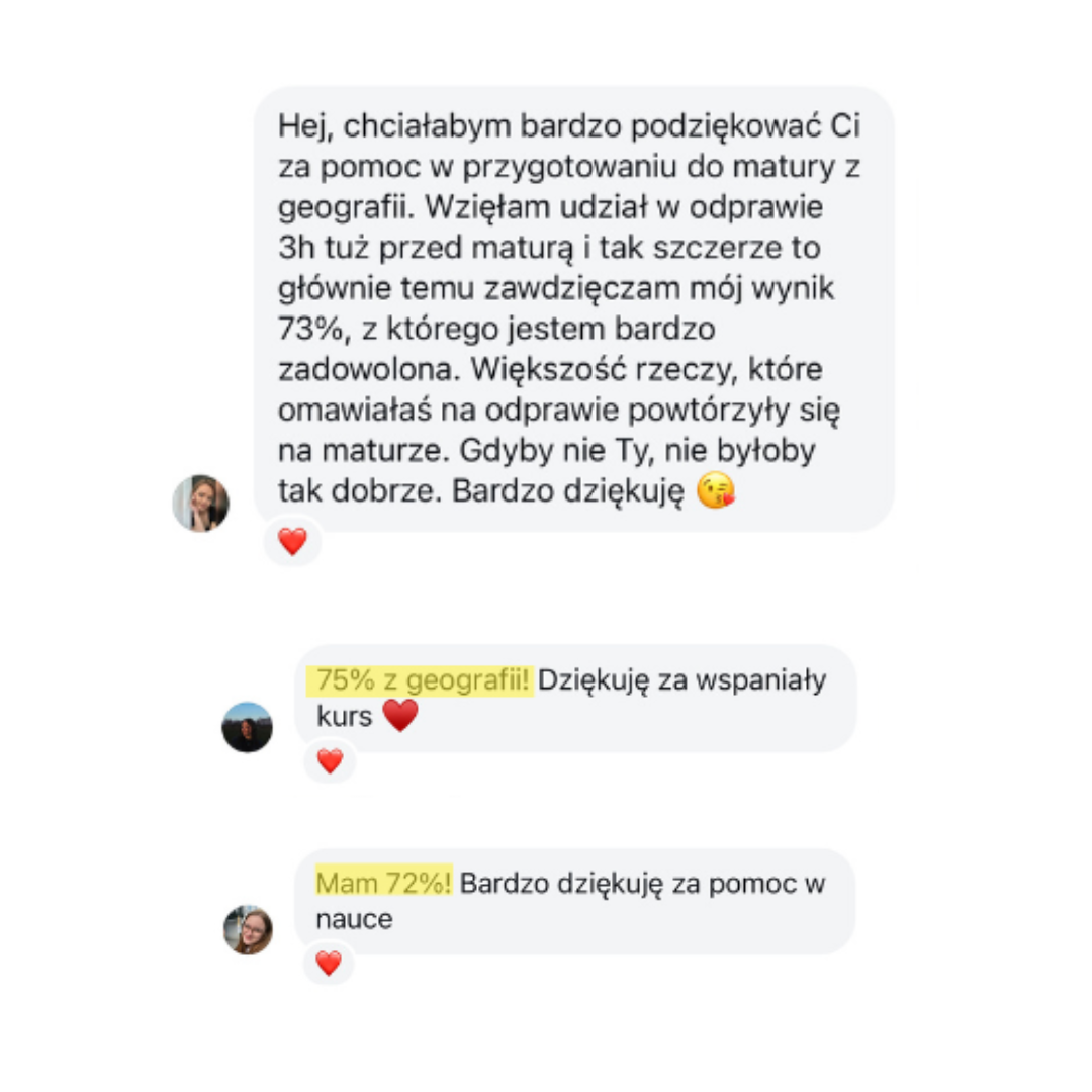 Ponad 1050 osób przeszło już przez moje kursy maturalne z geografii. Oto, co mówią o moich kursach i efektach: